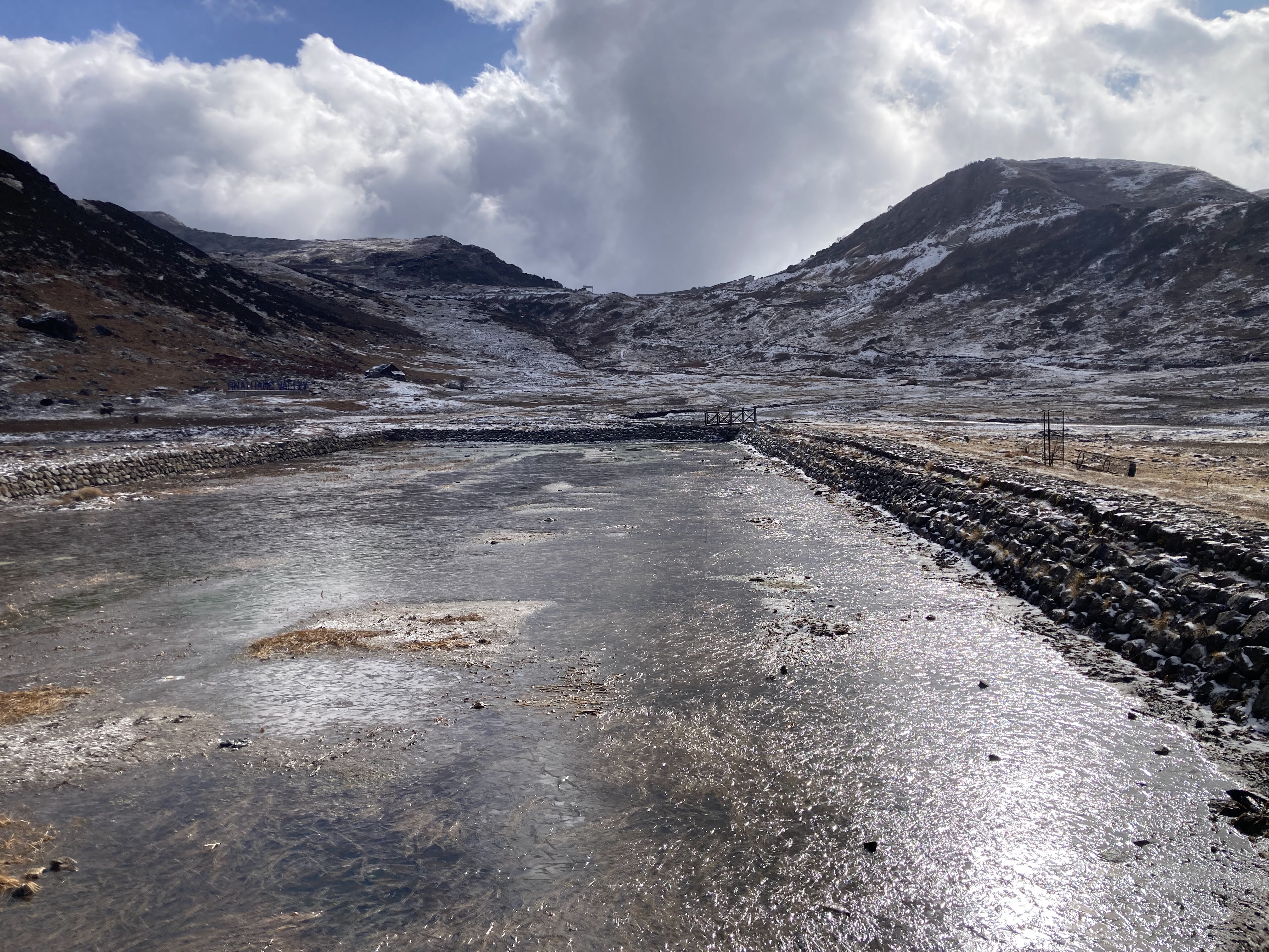 We had to turn off the main road to get to the Gnathang Valley. Had to wait a bit as the army was helping pull a local driver and his Mahindra Camper back onto the road. It had been driven off the road by the tipsy driver. The job was done. The driver was told to stay away from the wheel for a bit before trying to drive again. Given that we headed down the road, no clue if he listened.